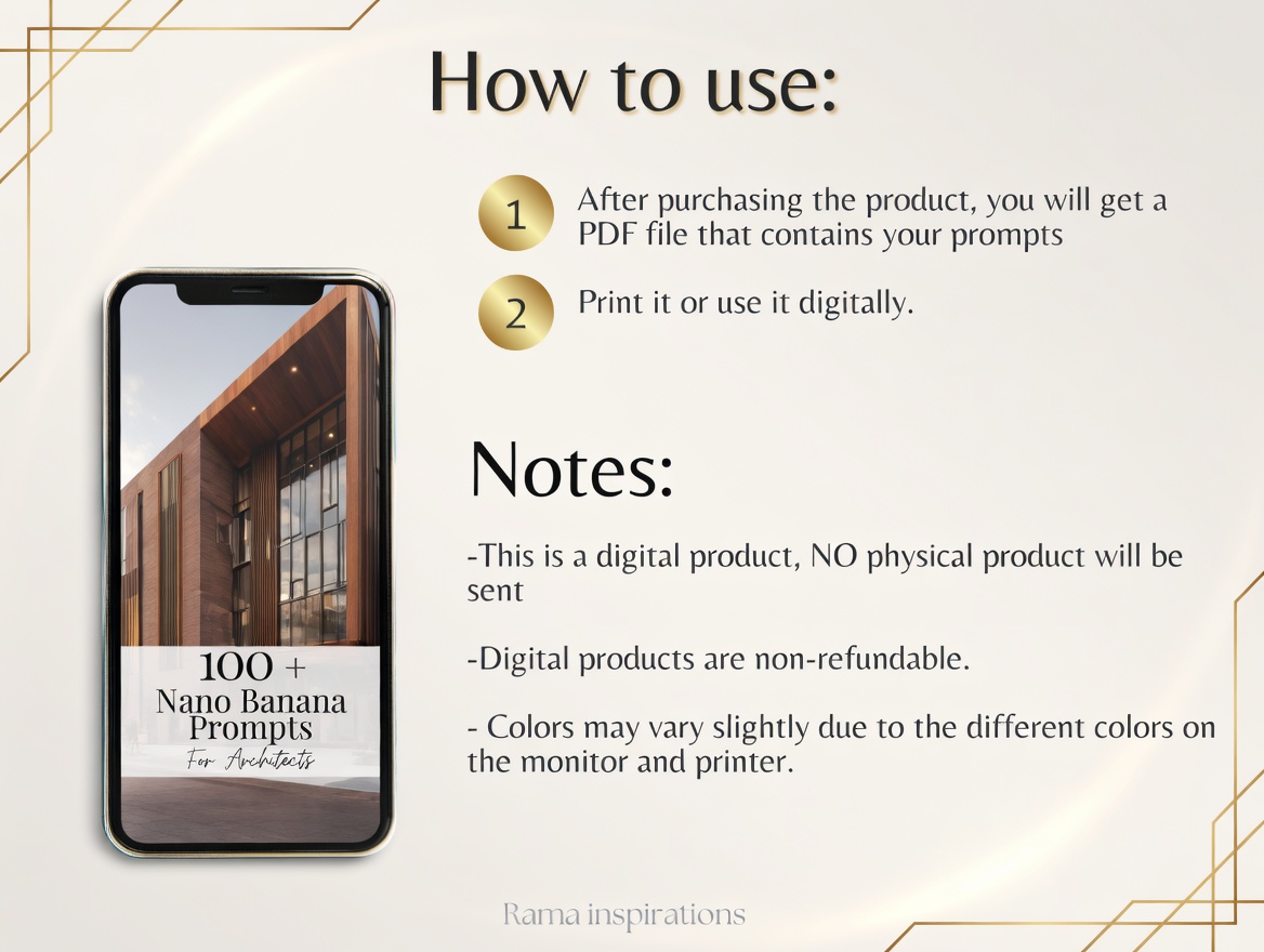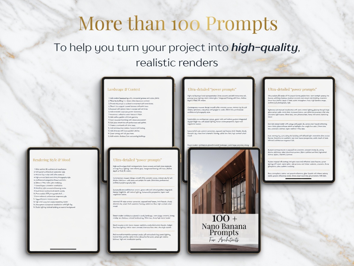 Get the 100+ Nano Banana Prompts for Architects today and transform the way you create with AI.
