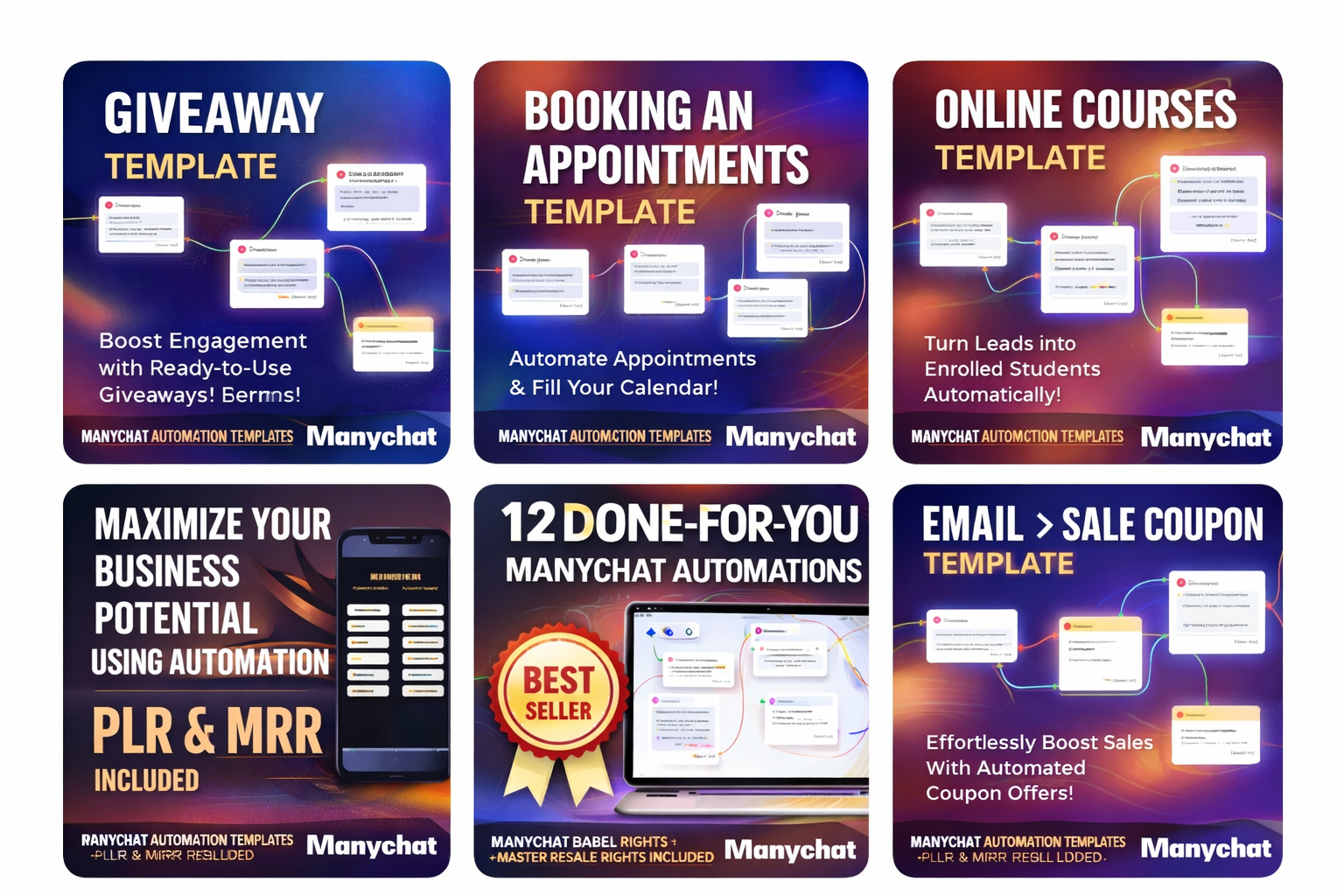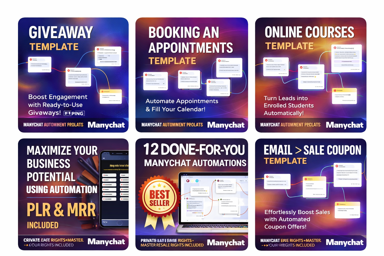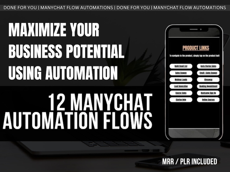 Get the 12 Premium ManyChat Automation Flows with Full PLR & MRR Rights today and turn every message into an opportunity.