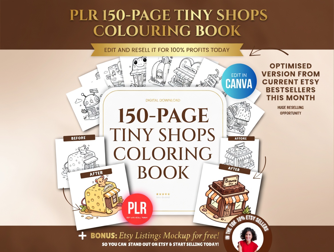 This premium 150-page Tiny Shops Coloring Book PLR gives you a complete, ready-to-customize solution that lets you launch beautiful, high-demand coloring books in minutes — not months.