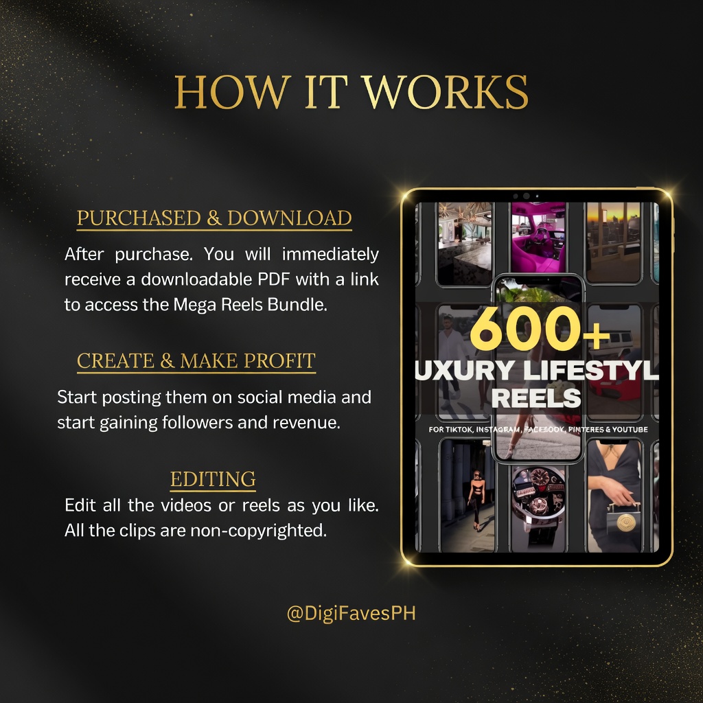 Grab the 600+ Viral Luxury Lifestyle Reels Bundle with Full PLR & MRR Rights today and start posting content that commands attention and respect.