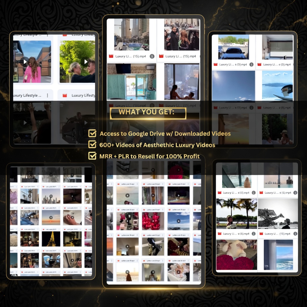 • 600+ High-Quality Luxury Lifestyle Video Reels (MP4 format)